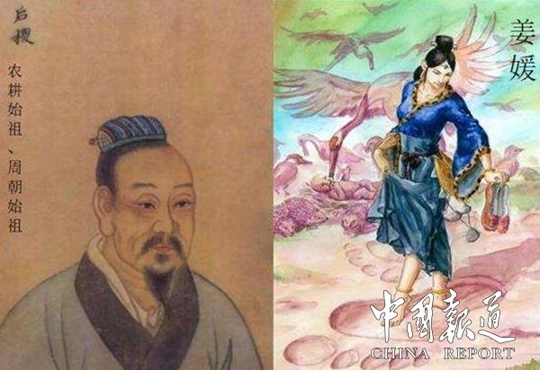 后稷的出生就極富傳奇,《史記》載:“姜嫄出野,見巨人跡,心忻然說,踐之而身動如孕者。居期而生子,以為不祥,棄之隘巷,馬牛過者皆辟不踐;徒置林中,適會山林多人,遷之;而棄渠中冰上,飛鳥以其翼覆薦之。姜嫄以為神,遂收養(yǎng)長子,初欲棄之,因名曰棄”。就是說,一次,姜嫄在出游途中,發(fā)現(xiàn)地上有一行非常大的巨人腳印,出于好奇,她用自己的腳在這個腳印上踩了一下,身體突然有一種感覺,姜嫄就懷孕了。十月懷胎生下一子,姜嫄認(rèn)為是不祥之兆,就決定將這個孩子扔掉。把他扔到狹隘的小巷上,想讓過道的牛羊踩死他,牛羊卻繞道而行,保護養(yǎng)育;她又想把兒子放在樹林中,正巧碰上那里伐木人太多,又給予照料,就抱著兒子走開;再想把他扔到河里的冰上凍死,卻見天上的鳥雀飛下來用翅膀覆蓋住他,給他送溫暖,鳥一飛去,他就呱呱啼哭,哭聲長而洪亮,一直傳播到大路上。姜嫄心想,這個孩子是不是有神靈在暗中保護,于是就把這個孩子抱了回來撫養(yǎng)。由于起初把他拋棄過幾次,所以給他起名叫棄。