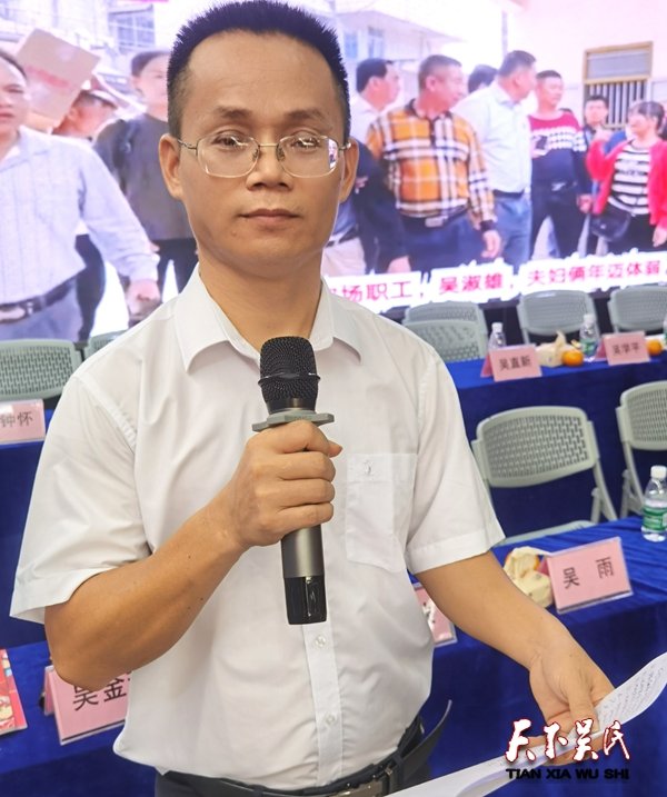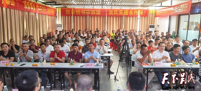 瓊海市吳賢秀研究會(吳氏公會)會長吳平先生作大會重要講話。吳平會長是瓊海吳氏宗親的帶路人、貼心人!他的大愛付出精神,有目共睹!幾年來,他為吳氏大廈建設(shè)、捐資助學(xué)、慈善、濟(jì)困幫扶等等各種愛心奉獻(xiàn)款額近百萬元。在大會上他勉勵瓊海吳氏宗親們,要高舉習(xí)近平總書記新時代的社會主義偉大旗幟,高舉紅色娘子軍紅旗,讓我們吳氏泰伯謙讓開拓的至德精神在陽江這片永遠(yuǎn)火熱的英雄大地上飄揚(yáng)!