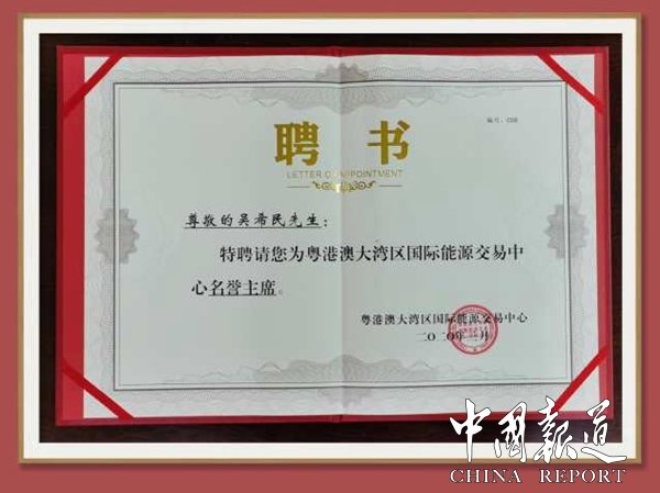 吳希民任粵港澳大灣區(qū)國(guó)際能源交易中心名譽(yù)主席