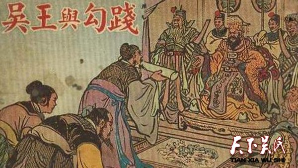 夫差繼位為吳國,他任伍子胥為相國,大夫伯魅為太率,加緊操練士兵。過了兩年,吳國出動(dòng)精兵打敗了越國,越國損失慘重,只剩下五千人,被吳軍包圍于會(huì)稽山。勾踐聽從了大臣文種、范蠡的計(jì)謀,派文種帶很多禮品賄賂吳國的太宰伯嚭,請求讓越國當(dāng)吳國的屬國。奸臣伯嚭引文種見了吳王,吳王準(zhǔn)備答應(yīng)了,伍子否表示反對。伯蓄縱恿吳王同意文種的要求,是王不聽伍子胥的勸諫,和越國講和。勾踐和范蠡起初留在吳國為吳王服役,后來吳王放他們回國了。