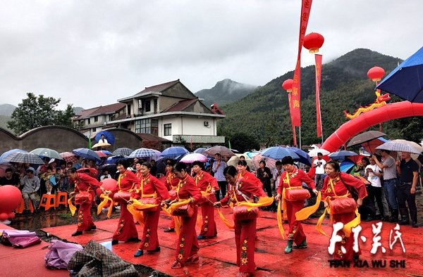 天下吳氏網(wǎng)訊(吳蜀豐特約釆編 瑞賢)皖江的庚子幕月,比往年似乎更要悶熱.近期蒼天連降甘露,將位于宗子國(guó)霹靂山的井邊村滋潤(rùn)的遍地郁郁蔥蔥,處處山青水秀.繁花似錦.初伏這天,被青山綠水所環(huán)抱的樅陽(yáng)縣錢鋪鎮(zhèn)井邊村.沿路一面面彩旗迎風(fēng)招展,歡快的歌聲在山谷中回蕩.在處于”襟江懷湖”獨(dú)特區(qū)位的宗子國(guó)老年大學(xué)”開門紅”的翩翩起舞中,良辰8.58`理事長(zhǎng)吳友宏宣布”霹靂山吳氏歷史名人文化活動(dòng)中心奠基典禮儀式”開始!隨即,數(shù)萬(wàn)頭鞭炮齊鳴,上百箱禮花呼嘯,千余只彩球騰空.多彩的硝煙扶搖,形似條條巨龍直掛云霄.瞬間,一幅美麗的畫卷映入眼簾鮮耀奪目.此刻,盡管小雨瀝瀝,攢動(dòng)的人群里卻不時(shí)爆發(fā)出陣陣掌聲,個(gè)個(gè)充滿激情,喜悅溢于臉龐……