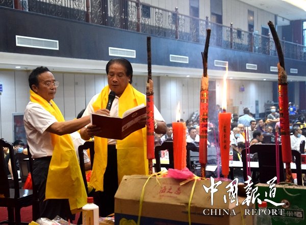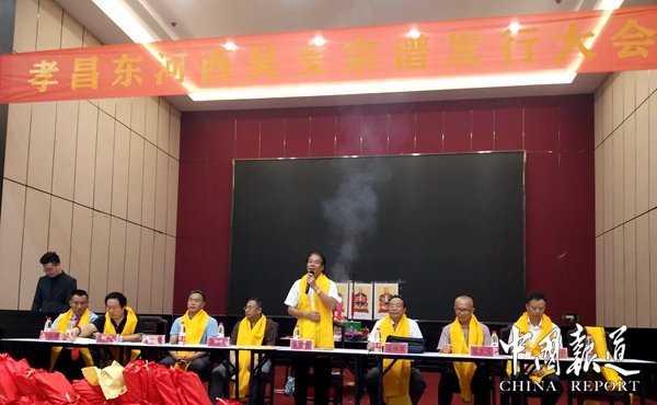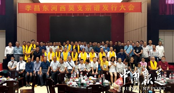 中國(guó)報(bào)道訊(吳蜀豐 報(bào)道)2020年7月26日上午,來(lái)自湖北孝感市孝昌河西東200余名吳氏宗親代表在肖港鎮(zhèn)天紫湖渡假村參加吳氏宗譜首發(fā)式。