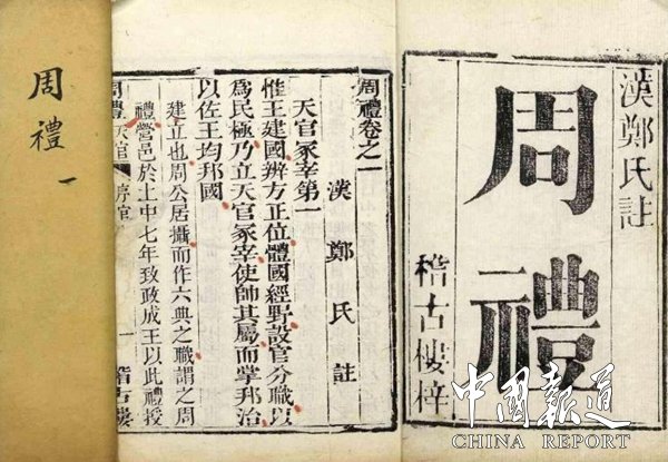 “禮”,就是周代的各種典章制度,是統(tǒng)治階級用來約束人們生產(chǎn)、生活的規(guī)范。周禮的內(nèi)容非常廣泛,涵蓋了政治、經(jīng)濟、軍事、宗教、婚姻家庭、倫理道德等各個方面,以及人們在吉、兇、軍、賓、嘉等各種禮節(jié)中的儀式要求,其中有許多是用國家的強制力來保證執(zhí)行的,具有極高的法律效力。