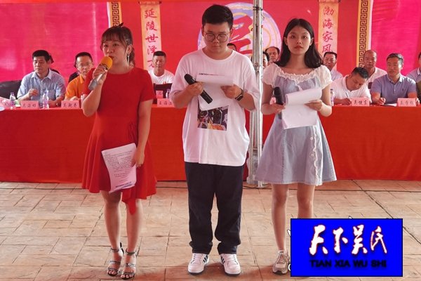 大會(huì)由三位吳家親人共同主持,分別是:湖南師范大學(xué)經(jīng)濟(jì)管理系大一生吳文倩;海南大學(xué)旅游管理系大一生吳華峰;塔洋鎮(zhèn)珍寨酒店王飛月(吳家媳婦)。下午4點(diǎn)40分,在《中華人民共和國(guó)國(guó)歌》樂曲中拉開惟幕。瓊海市吳賢秀研究會(huì)(公會(huì))秘書長(zhǎng)吳金芳在致詞中說:此時(shí)此刻的龍江吳氏宗親大會(huì),是經(jīng)過近一個(gè)月來宗親們的艱辛付出換來的!