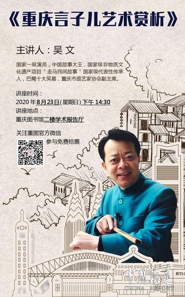 “朋友,請(qǐng)借一哈殺人放……”啥子意思?“兄弟伙,今天晚上整不整點(diǎn)六七八……”沒聽過搞不懂?不要緊,重慶言子兒藝術(shù)的創(chuàng)始人、國(guó)家級(jí)非遺代表性傳承人吳文老師要來給你開課講個(gè)“一二三”了。8月23日下午,重慶圖書館二樓的學(xué)術(shù)報(bào)告廳里擠滿了讀者和粉絲,大伙聚精會(huì)神聽的最新一期重圖講座正是吳文老師帶來的《重慶言子兒藝術(shù)賞析》。有關(guān)言子兒的故事,聽他慢慢給你擺……