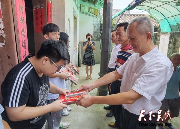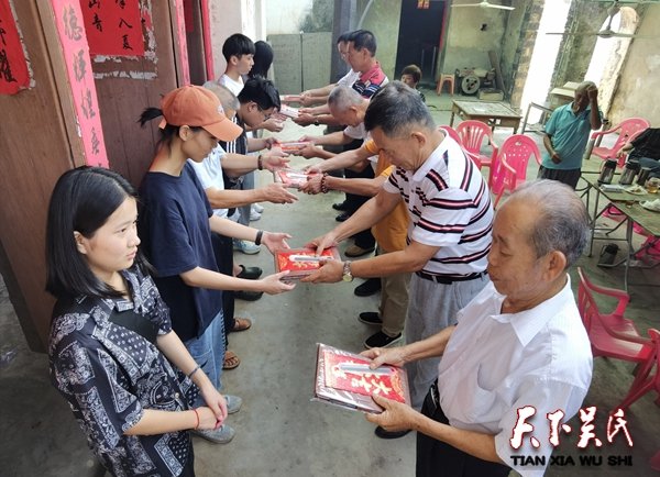 為響應國家抗擊新冠病疫的號召,頒獎活動一切從簡,上午11時,在塘柳村吳氏宗祠坐滿了吳氏宗親家長以及6位獲得獎勵金的同學,分別是被北京師范大學錄取的吳弘亮、被湖南工業(yè)大學科技學院錄取的吳清斌、被大連理工大學錄取的吳坤鍵、被海南熱帶海洋學院錄取的吳燕微、被湖南警察學院錄取的吳安琪、被海南大學錄取的吳以瑄。