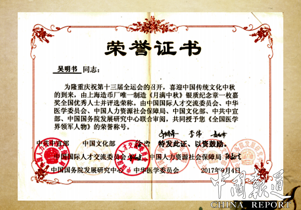 吳明書,他勇于發(fā)明創(chuàng)新,大膽尋求治病救人的良方,也因此獲得多項國家榮譽證書。因多年前其父因患腦淤血去世,對其打擊非常沉重,他決心尋求一副治療心腦血管疾病的藥方。研制新藥方的道路曲折而艱辛,當年曾遭到了當?shù)匦l(wèi)生院有關(guān)領(lǐng)導(dǎo)的反對,也遭到周圍同事的非議,但他都選擇堅持了下來,研制工作數(shù)年如一日,不曾間斷。汲取古典中草藥理論之精華,結(jié)合幾十年行醫(yī)經(jīng)驗,采用科學(xué)的中藥制備方法,并以自己為試驗對象,經(jīng)過長期的臨床試驗研究,終于成功研制出治療心腦血管疾病的優(yōu)秀中成藥,并申請了國家技術(shù)發(fā)明專利。該新型中成藥主要由當歸、首烏、伏神等藥材,加入黃酒、蜂蜜配制成藥丸,對治療心腦血管疾病效果好、見效快、無副作用等優(yōu)點。