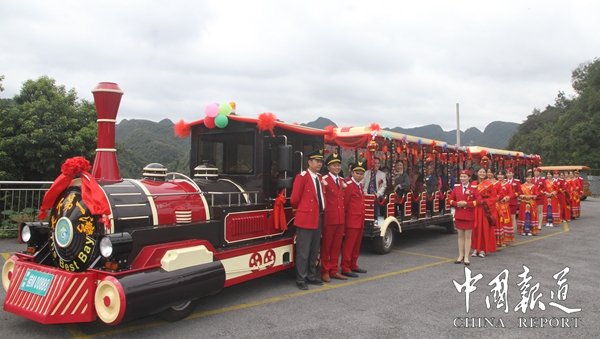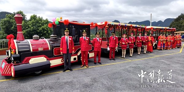 中國報(bào)道訊(吳蜀豐 通訊員覃源岑福山)車笛嗚鳴,車輪轉(zhuǎn)動(dòng)。金秋十月,老區(qū)東蘭喜事連連。2020年10月18日上午,香港進(jìn)源集團(tuán)-廣西第一灣股份有限公司在世界長壽金三角廣西東蘭秀美第一灣旅游名勝風(fēng)景區(qū)舉行旅游觀光小火車首發(fā)啟動(dòng)儀式。