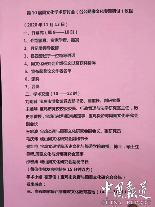 中國報道訊(通訊員鄭鼎文)金菊綻放傲霜雪,瑞氣祥和初冬來。深秋初冬之際,景色醉人,千年古縣城岐山迎來了第十屆周文化學術(shù)研討會——召公勤廉文化論壇。