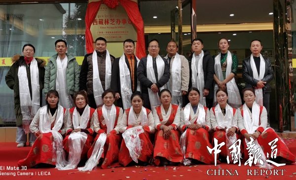 掛牌儀式在喜慶的音樂中開始,穿著美麗藏族禮服的藏族姑娘按照藏族傳統(tǒng),給每位到場嘉賓分別獻(xiàn)上表示敬意和祝福的潔白哈達(dá)。