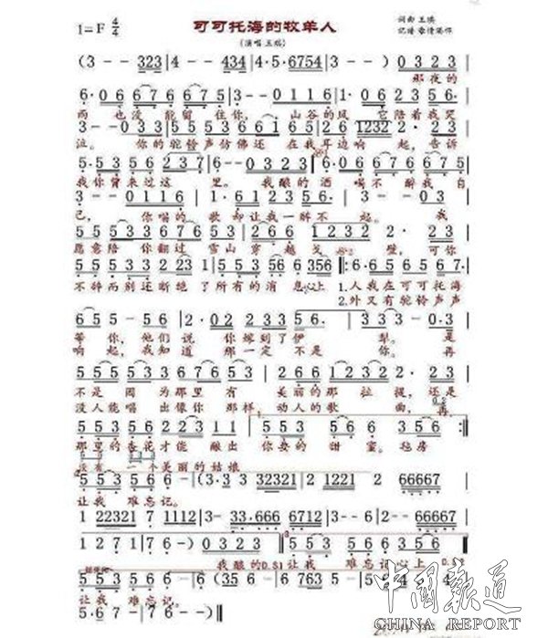 歌詞共分兩部分,前半部分為訴說,向聽眾訴說一個感人至深的愛情故事;后半部分為抒情,牧羊人向蒼天表達著內(nèi)心的獨白。這首歌詞是多一字多余,少一字缺憾!可謂美不勝收。