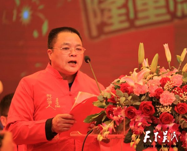 理事會會長吳福新在紀念盾公肇基嶺后千年慶典儀式上講話,三村宗賢、西南大學(xué)學(xué)院教師黨支部書記、副教授、碩士生導(dǎo)師吳根土致辭,