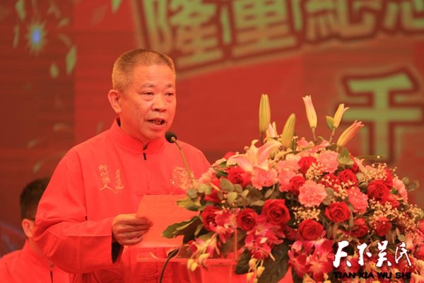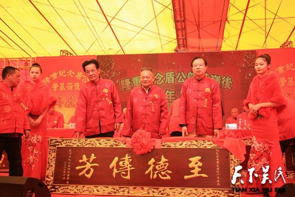 上午十一時許,慶典大會開始。賓主歡聚一堂,主持人逐一邀請嘉賓代表及嶺后各分支代表到主席臺就座。全體肅立,奏《吳氏一家親》會歌,三村村主任吳春龍致歡迎詞,原安溪縣副縣長、泉州糧食局局長、泉州吳氏大宗祠管委會秘書長吳友平致賀詞,安溪吳文化研究會、安溪吳氏宗親聯(lián)誼會會長吳偉忠致賀詞,吳偉忠在致辭中說:千年前,隱之公后裔吳盾公跟隨祖父源榮公,從南安瀨水頭開基安溪城郊吳埔,在當(dāng)時以傳統(tǒng)農(nóng)耕而生存的落后的生產(chǎn)力條件下,盾公和兄長喜公高瞻遠矚,為后世著想,為避水患,分別遷離近水又地勢低洼的吳埔,喜公一脈輾轉(zhuǎn)德化、永春,安溪五羚、磐山、石門以及省內(nèi)外;盾公一脈肇基長卿三村嶺后,后裔播遷多卿、祥地、陽星、半侖以及省內(nèi)外。至今,三村嶺后吳氏,在村里建有鎮(zhèn)卿祠,供奉遠祖、名揚史冊的大清官吳隱之公。