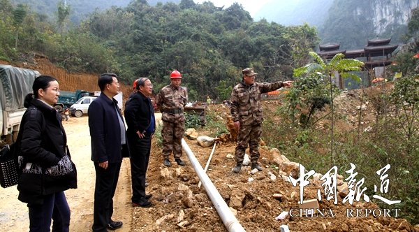 中國報道訊(通訊員覃源岑福山朱清華)2020年12月25日上午,河池市人大常委會副主任韋桂元及市直有關(guān)部門領(lǐng)導來到廣西第一灣股份公司東蘭縣長樂宮景區(qū)進行項目開發(fā)調(diào)研。東蘭縣人大常委會主任覃晗勝,香港進源集團主席,廣西第一灣股份公司董事長吳進枝等陪同考察。