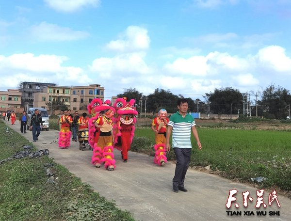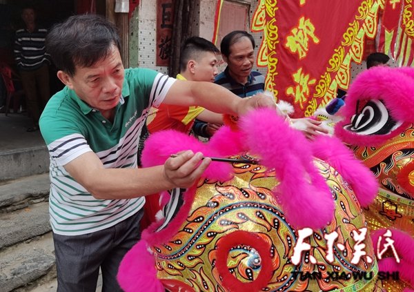 上午11點50分,塘柳村吳氏宗祠前,隨著海南粵獅族舞獅隊的威風(fēng)鼓聲響起,首先由塘柳村吳仕發(fā)公理事會理事長吳坤導(dǎo),宗長吳坤球為雙獅舉行點晴醒目儀式,活動開始,鑼鼓喧天,雄獅歡騰祈福,獅歡人樂。