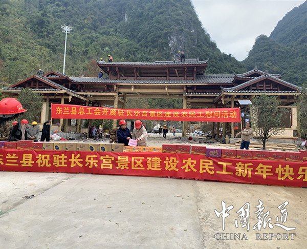 中國報(bào)道訊(通訊員覃源 岑福山 朱清華)12月29日,中共東蘭縣委常委、副縣長何文舟,縣人大常委會(huì)副主任覃穆耘,縣總工會(huì)常務(wù)副主席黃冰,以走進(jìn)施工工地送溫暖的形式,對該縣正在突擊施工的中國名勝景區(qū)長樂宮重點(diǎn)項(xiàng)目農(nóng)民工進(jìn)行慰問,開展節(jié)前為農(nóng)民工送去新春的慰問和祝福。
