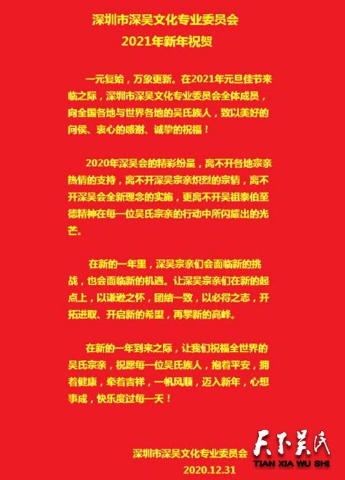 深圳市深吳文化專業(yè)委員會(huì)2021年新年祝賀