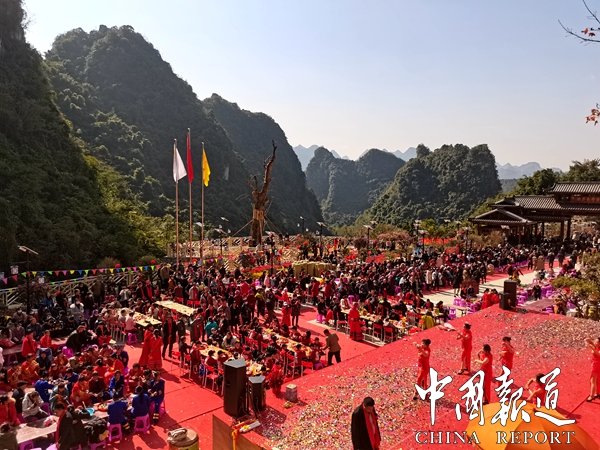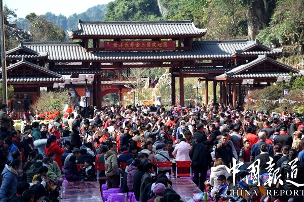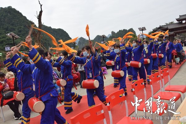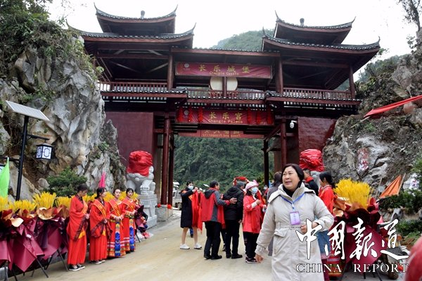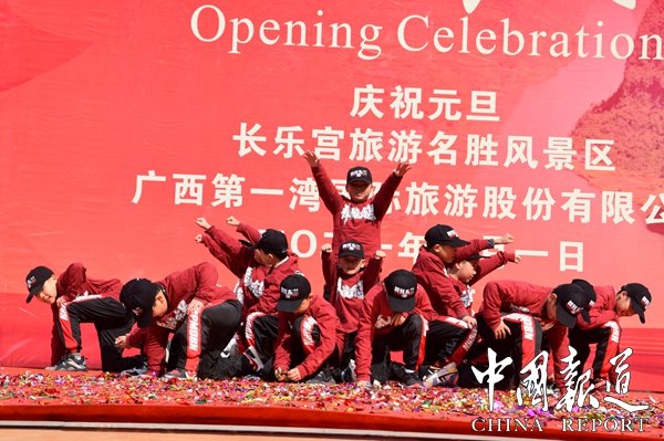 中國第一個宮殿式溶洞長樂宮風(fēng)景區(qū)今日上午(1月1日)舉行隆重的開業(yè)慶典,東蘭縣委縣政府等有關(guān)負責(zé)人加開業(yè)盛典。