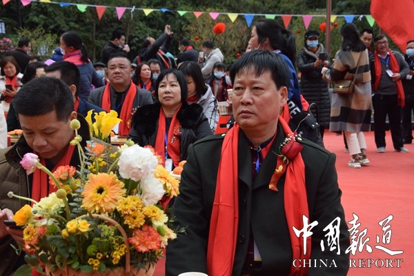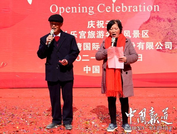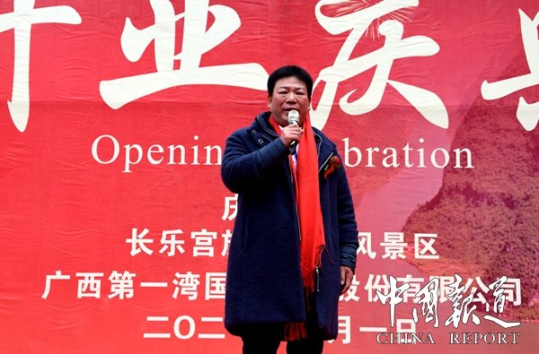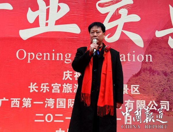 據(jù)主持人歐桑介紹,廣西第一灣股旅游份公司在中共東蘭縣委、縣人民政府的關(guān)懷下,經(jīng)過幾年的建設(shè),中外關(guān)注的天下奇觀長樂宮旅游景區(qū)基本完成階段性任務(wù),達到開放條件,決定于2021年1月1日也就是今天正式對游客開放。長樂宮巖溶地質(zhì)形成于八億年前,長樂宮旅游名勝風(fēng)景區(qū)位于廣西東蘭縣長樂鎮(zhèn)板登村虎頭山腰,鄰近巴馬縣,鳳山縣,全程高速和二級公路,是以溶洞、峽谷、石瀑布、古生物化石等地質(zhì)遺跡景觀為主體,輔以豐富的生態(tài)景觀和人文景觀,集科學(xué)和美學(xué)價值于一-體的大型綜合性地質(zhì)公園,是廣西首個花園式景區(qū),中國第一個宮殿式民族景區(qū)典范。景區(qū)內(nèi)把旅游、探險、仿古、穿越、禱佛、休閑匯于一體。洞內(nèi)是仙境、洞外是花園,長樂宮名勝風(fēng)景區(qū)堪稱世界第一宮景區(qū)。長樂宮是一塊寶山福地,今天我們也想在這里借長樂宮開業(yè)之際祝福我們偉大的祖國,祝福祖國繁榮昌盛、人民幸福安康。全體起立,升國旗,唱國歌,祝福祖國。