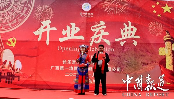 香港進源集團、廣西第一灣國際旅游股份有限公司監(jiān)事長董月英宣布開業(yè)并宜讀感謝信。香港進源集團董事長、廣西第一灣國際旅游股份有限公司董事長吳進枝致辭井介紹長樂宮項目建設(shè)情況。廣西第灣國際旅游股份有限公司第二屆股東會主席麥錢江致辭。板登村黨支部書記岑安軍致辭。廣西第灣國際旅游股份有限公司第二屆股東會副主席賴智明、秘書長吳修良、股東會榮譽主席蘇明龍、監(jiān)事會主席賴智明,黨支部書記覃源、常務(wù)副總經(jīng)理南建陸、副監(jiān)事長吳安徽、副總經(jīng)理霍古宏、總經(jīng)濟師鄧建、財務(wù)部副部長覃華領(lǐng)、財務(wù)運營管理中心副主任吳翠娥等有關(guān)負責(zé)人為長樂宮景區(qū)揭牌。