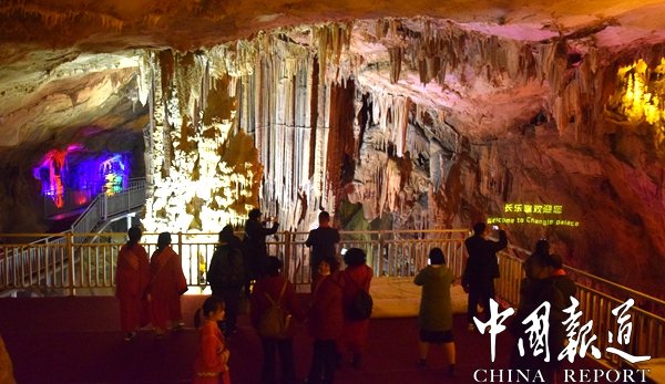 長樂宮溶洞今日下午三點正式向游客開放,每批次游客僅限50人,景點全長1500米左右.溶洞內(nèi)景點可供游客觀賞行程暫定為300米,還有更多的景點及更長里程計劃在本月下旬后逐一向游客開放開放。截至目前,近3000名游客前往長樂宮打卡觀賞。