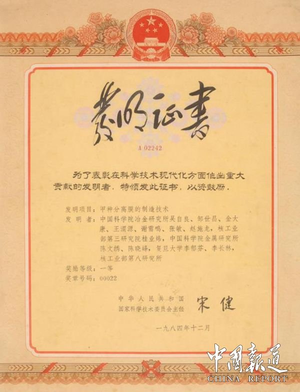 60年代,上海冶金所與原子能所、復旦大學等單位的科研人員組成第十研究室聯(lián)合攻關(guān),吳自良兼任該室主任,主持研制分離鈾同位素的核心部件甲種分離膜,于1964年試制成功并投入使用。
