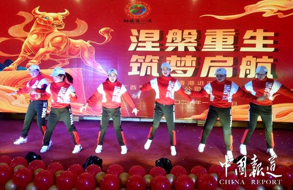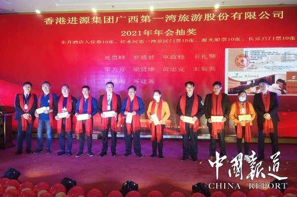 中國報道訊(吳蜀豐通訊員覃源岑福山韋麗娜)新年伊始,萬象更新!伴隨著新春里的春色,2021年1月13日全天,香港進源集團廣西第一灣國際旅游股份有限公司在總部選拔50名員工代表在激動與歡樂的氣氛中,齊聚東蘭縣東昇國際大酒酒店,喜迎公司一年一度的總結(jié)表彰年會。