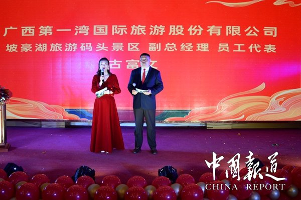 會上,集團公司董事長吳進枝對2020年度集團第一灣股份公司各項工作作了高度概括,同時對全體職工一年來的辛勤努力給予了充分的肯定。他說,回首往事,精彩紛呈。2020年,是公司穩(wěn)步發(fā)展的一年,也是各部門、各員工逐步成長的一年,是公司持續(xù)良好發(fā)展勢頭的一年,是隊伍建設(shè)取得驕人成績的一年,是全體員工迎接挑戰(zhàn)、經(jīng)受考驗、努力克服困難、出色完成任務(wù)的一年。大家工作的勤奮、成功,給公司留下了發(fā)展的足跡,大家辛勤的付出給公司留下了許多值得贊賞的故事。2020年在中共東蘭縣委、縣政府的正確指導下,經(jīng)公司包裝提升,東蘭紅水河第一灣景區(qū)獲得國家4A級景區(qū),創(chuàng)造了東蘭生態(tài)旅游首例,坡豪湖國家濕地公園旅游碼頭符合國家4A級景區(qū)要求正常運營并準備申報國家4A景區(qū),紅海酒家順利開業(yè),小火車開進第一灣,《將軍鄉(xiāng)一號》雙層豪華游輪駛?cè)肫潞篮?,長樂宮溫泉酒店奠基,籌備第二屆第一次全體股東代表大會等等。