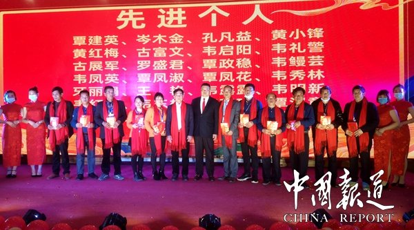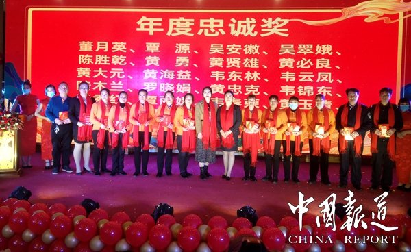 致辭結(jié)束后,集體觀看感受各分會場在大屏幕傳來各分會場的舉行了隆重的拜年祝福儀式,由集團公司董事長吳進枝和公司領(lǐng)導為2020年度優(yōu)秀員工代表進行了頒獎,共有28位優(yōu)秀員工獲得先進個人,22位員工獲得忠誠獎,6支優(yōu)秀團隊獲先進集體表彰。