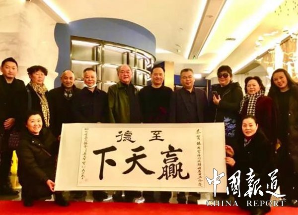 吳天佑宗親祖籍福建,來成都投資發(fā)展已近20年,先后投資國偉建材、閩盛實業(yè)、粵菜會所、以及銀湖海鮮等實體經(jīng)濟行業(yè)。事業(yè)順利,收獲滿滿。受天佑宗親之邀,世吳副主席、川吳總會會長吳天智與川吳總會顧問、四川省退伍士兵就業(yè)創(chuàng)業(yè)中心黨組書記、原武警四川總隊副政委吳萬錦大校,星辰航都國際灑店董事長吳明全,川吳總會執(zhí)行秘書長吳華,鴻林大灑店董事長吳仕錦,萬貴酒坊、萬鑫農(nóng)業(yè)董事長吳萬貴,善紀源公司總經(jīng)理吳言芳等,一行12人,帶上川吳禮品---吳氏書法名家吳洪武書寫的“至德贏天下”、著名涉吳茶企國盾集團子公司-福建省仙茶美公司生產(chǎn)的富硒八仙金花茯茶,一同前往祝賀,受到熱烈歡迎與款待。