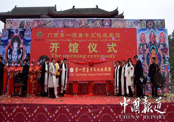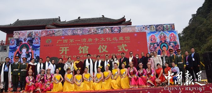 中國報道訊(吳蜀豐通訊員岑福山)2021年1月23日上午,廣西首個唐卡文化收藏館在東蘭縣三石鎮(zhèn)紅水河第一灣國家4A級旅游名勝風(fēng)景區(qū)游客中心開館.300多幅唐卡作品及一幅三國時期藏文書法作品,讓壯鄉(xiāng)民眾近距離感受藏族文化藝術(shù)魅力。