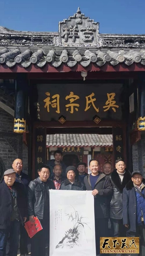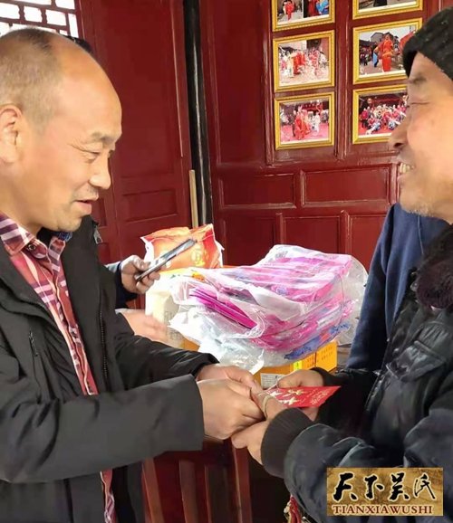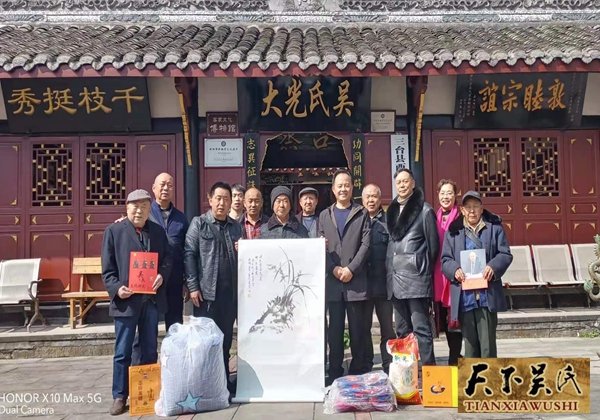 吳天智一行還給近70歲的吳金元宗長送去了節(jié)日的慰問品和慰問金以及世吳書刊等物,總會副會長,中國著名畫家吳大華還專門贈送了一幅自己的作品以示勉勵。