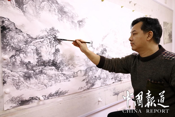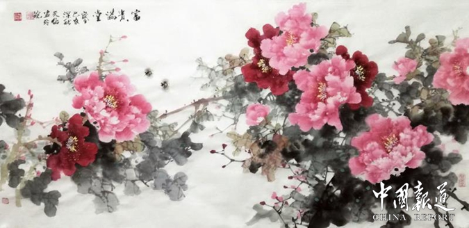 在歷經(jīng)30余年自學(xué)繪畫的艱難畫道中,一步一步成長起來的楊天佑,現(xiàn)已擁有中國書畫家聯(lián)誼會(huì)會(huì)員、中國民建藝術(shù)委員會(huì)會(huì)員、中國教育電視臺(tái)水墨丹青畫院特聘畫家等“耀眼光環(huán)”。他的國畫山水和牡丹等畫作遠(yuǎn)銷國內(nèi)外,并深受書畫愛好者喜愛。尤其值得驕傲的是,他的《峽江煙云圖》和《春山神韻圖》等巨幅畫作,曾先后被臺(tái)灣花蓮工業(yè)園區(qū)、新加坡香格里拉酒店、新加坡總理李顯龍秘書事務(wù)辦公室以及巴基斯坦總理秘書處等海外友人收藏。
