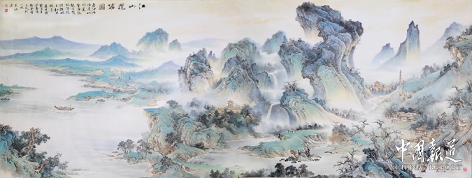 細(xì)看楊天佑的巨幅山水畫,用筆、用墨、用線隨意瀟灑、奔放靈動(dòng),畫風(fēng)艷而不俗,大氣恢弘?;B畫構(gòu)圖漂亮、筆法精道、墨韻十足、雅俗共賞,難怪深受全國各地書畫愛好者青睞!
