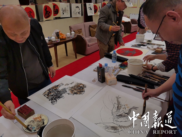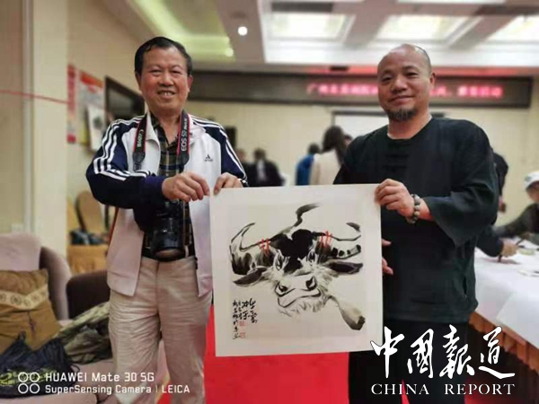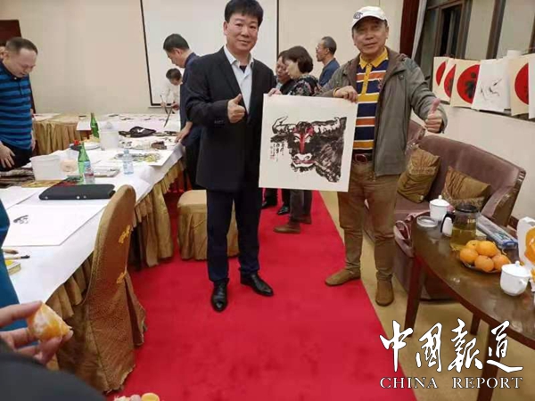 在廣西東蘭縣進(jìn)行文化旅游開發(fā)的第四屆廣州炎黃文化研究會(huì)會(huì)長、香港進(jìn)源集團(tuán)董事局主席、廣西第一灣國際旅游股份有限公司董事長吳進(jìn)枝3月27日晚在東昇國際大酒店召開了采風(fēng)團(tuán)座談會(huì),采風(fēng)團(tuán)成員與當(dāng)?shù)赜嘘P(guān)部門領(lǐng)導(dǎo)進(jìn)行親切交流,并現(xiàn)場撥墨書寫作畫,據(jù)統(tǒng)計(jì),采風(fēng)團(tuán)在東蘭考察期間,完成繪畫、書法等作品60多幅,拍攝圖片作品120多幅。吳進(jìn)枝會(huì)長在座談會(huì)上表示,廣州炎黃文化研究會(huì)幾年來匯聚了眾多的有志于傳承中華傳統(tǒng)文化的各方精英,組建了炎黃畫院,為研究會(huì)吸納了一批重量級(jí)的藝術(shù)家。在文化傳承、理論研究、出書出刊、活動(dòng)交流、文化宣傳等各領(lǐng)域都取得了豐碩的成果,作為新一屆研究會(huì)主要負(fù)責(zé)人,一定繼續(xù)發(fā)揚(yáng)光大。希望通過這次活動(dòng),畫家們帶著東蘭山山水水素材,精心創(chuàng)作,把廣西東蘭山水和民俗風(fēng)情融入畫中,舉辦一次全國性的高質(zhì)量畫展,向建黨100周年獻(xiàn)禮。采風(fēng)團(tuán)成員表示,將發(fā)揮各自所長,創(chuàng)作出書畫攝影美術(shù)作品,以緬懷先烈和激勵(lì)后人,宣傳推介東蘭文化旅游產(chǎn)業(yè)。