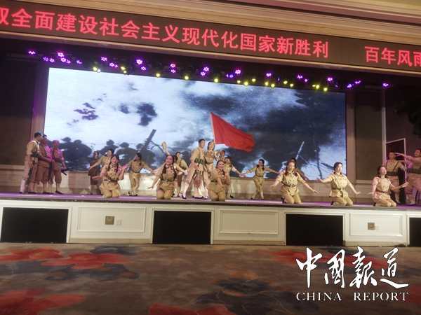 會(huì)上表彰了先進(jìn)個(gè)及扶貧攻堅(jiān)突出貢獻(xiàn)者,豐富多彩的文藝節(jié)目情景詩朗誦《:紅色箴言》情景再現(xiàn)《:偉人之聲》舞蹈《山丹丹花開紅艷艷》情景歌舞《:繡紅旗》京韻歌舞《中國脊梁》,歌舞《英雄兒女》歌舞《再唱山歌給黨聽》《重溫入黨誓詞》舞蹈《軍魂》情景劇《承諾》舞蹈《雪域雄魔》歌舞《不忘初心,繼續(xù)前進(jìn)》大合唱《沒有共產(chǎn)黨就沒有新中國》。