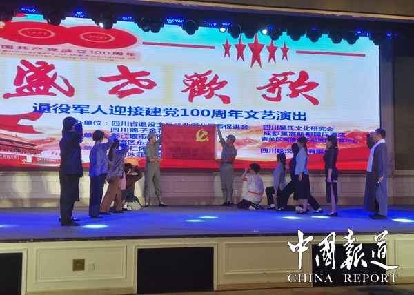 中國報(bào)道訊(吳蜀豐 報(bào)道)6月27日,由四川省退役士兵就業(yè)創(chuàng)業(yè)服務(wù)促進(jìn)會(huì),四川省吳氏文化研究會(huì),成都星宸國際酒店,四川鴿子金花茯茶有限公司主辦的退役軍人慶祝建黨100周年文藝匯演在成都星宸國際酒店正式降下帷幕。本次活動(dòng)支持單位有都江堰退役軍人事務(wù)局,青羊區(qū)離退休干部管理服務(wù)中心和雙流區(qū)東升街道辦事處。