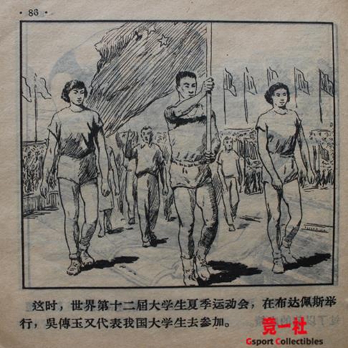 1953年8月初,第四屆國(guó)際青年聯(lián)歡節(jié)在羅馬尼亞首都布加勒斯特舉行。9日下午,在100米仰泳的決賽中,吳傳玉如蛟龍擊水,戰(zhàn)勝六名外國(guó)對(duì)手,以1分6秒4的優(yōu)秀成績(jī)奪取金牌。這是新中國(guó)體育史上第一塊在國(guó)際比賽中得到的金牌。它刻寫著新中國(guó)體育人的驕傲和不屈。