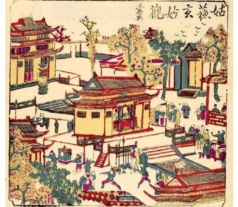 清雍正后蘇州經(jīng)濟(jì)進(jìn)一步發(fā)達(dá),富甲天下,且文風(fēng)昌盛,蘇州市民階層自然會要求在年畫這類實用藝術(shù)中反映出他們的生活面貌和審美趣味。這些市民階層的審美趣味既不是文人的“大雅”也不是農(nóng)民的“大俗”,而是“雅俗共賞”。此時桃花塢木版年畫畫法最精、刻工最細(xì)、結(jié)構(gòu)最復(fù)雜、幅面最宏大的就多為城市風(fēng)景畫,是寄興于充溢著市民情趣的都市風(fēng)光。不僅刻畫了各種繁華的實際場所,熱鬧的貿(mào)易集市, 同時穿插著人們的種種活動,不厭其煩的反映著當(dāng)時的社會背景、人文活動和民間生活,更像是一卷卷鮮活直觀的歷史畫軸。如,《姑蘇閶門圖》、《三百六十行》、《山塘普濟(jì)橋》等等都是將市井生活淋漓盡致的加以展示的作品。
