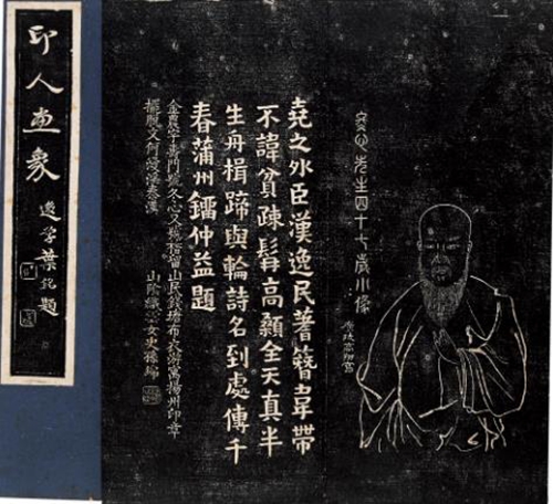 至今,西泠印社內(nèi)還保留有他的兩件碑刻作品,均在仰賢亭內(nèi)。一件為嵌于正面壁間的丁敬像,《西泠印社志稿》載“為吳石潛篆刻”。另一件為置于亭內(nèi)石圓桌上的銘文,系吳隱宣統(tǒng)二年(公元1910年)的作品。