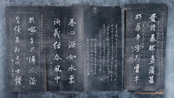 吳隱的碑刻作品中,特別值得一提的是他于1900年刻竣的《古今楹聯(lián)匯刻》。該匯刻是將明清名賢296人的楹聯(lián)367副,用照相技術(shù)縮小再刻于石,這在當(dāng)時是一項創(chuàng)舉。這些碑刻每塊碑長76厘米,寬32厘米,厚6厘米,正反面都有對聯(lián),現(xiàn)存于杭州碑林。關(guān)于匯刻的緣由,吳隱在《古今楹聯(lián)匯刻》的跋文中說:余“性喜篆刻,初握管時,即摸壁上聯(lián)字以為玩弄,雖父師禁之不改。既長,與海內(nèi)士夫游,擴覽名人手跡益多。爰多方借取,用泰西攝影法縮刻于石。積年既久,得三百余聯(lián),分為十二卷,復(fù)倩同志各書小傳于右,俾觀者有考證焉。今一并刻竣,為記其緣起如此。”