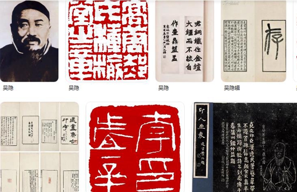 吳隱工書、畫,善刻印、篆、隸骎骎入古,山水秀潤有新意,尤以精制印泥著名。更創(chuàng)制仿宋聚珍排印書籍。光緒三十年(1904)與丁仁、王福庵、厲良玉、葉為銘等創(chuàng)設(shè)“西泠印社”于西湖孤山,而自設(shè)分社于上海。嘗集古今名人楹帖縮刻于石,名古今楹聯(lián)匯刻,又集所藏印為遯盦集古印存。又有遯盦印話、鐵書、古陶存、泉存、磚存、編遯盦金石叢書。卒年五十六。次子瓏,字振平,能繼父業(yè)。