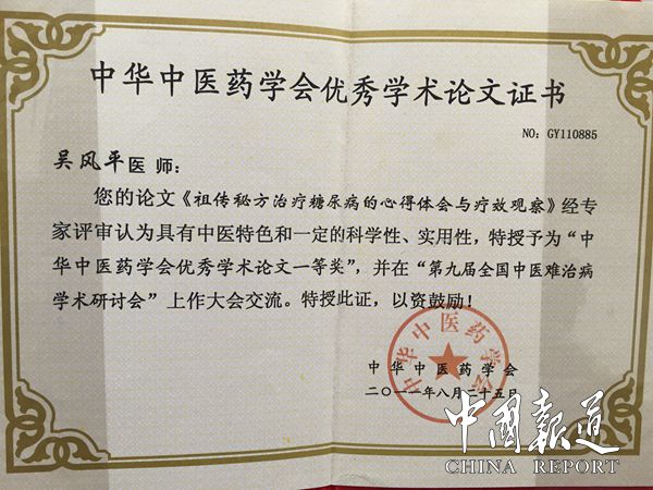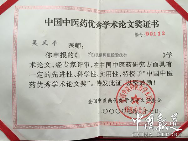 吳風(fēng)平臨床三十余年來,秉承祖上高尚的醫(yī)德醫(yī)風(fēng),雖身懷絕技,但卻謙虛低調(diào),他以德服人,以術(shù)服人,從不以名醫(yī)或大師自居,對同道、學(xué)生、徒弟、平民百姓、患者皆一視同仁。以擅長治療糖尿病、高血壓、腫瘤與癌癥、中風(fēng)偏癱(半身不遂)、類風(fēng)濕病、強(qiáng)直性脊柱炎、股骨頭壞死、腰間盤突出、塵肺病、肝硬化及腹水、膽腎結(jié)石病、哮喘、牛皮癬、白癜風(fēng)、男女不孕不育癥等久治不愈的疑難雜癥而名譽(yù)國內(nèi)外。
