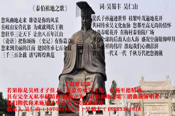 中國報道訊(吳蜀豐報道)【編者按】吳姓從古至今在中華百家姓中舉足輕重,吳氏家族英才輩出,無論是在政界、軍界、商界、學(xué)術(shù)界、醫(yī)學(xué)界,還是在海內(nèi)外商界、政壇及演藝界,吳氏子弟都是業(yè)內(nèi)佼佼者,有著重要的地位并發(fā)揮著重要的作用,他們是吳姓人的驕傲,也是吳氏后輩學(xué)習(xí)的典范和榜樣。