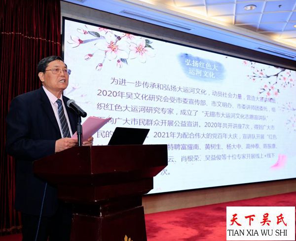 過去的2021年,是無錫市吳文化研究會(huì)碩果累累的一年,2021年,為配合祖國百年大慶,宣講隊(duì)開展“紅色航路錫芳譜”講座。特聘富耀南、黃樹生、楊大中、高仲泰、陳振康、金石聲、桑 梅、馬國云、肖根榮、吳益俊等十位專家,作講座,每月一次。課題有無錫重要黨史人物——秦邦憲、陸定一的故事 、老山界之未了情、巾幗英烈劉群先、碧血才女楊玉英、百年大黨的“青春密碼”等。講座的內(nèi)容是滿滿的正能量,激揚(yáng)斗志,鼓舞人心;2021年5月29日我會(huì)組織開展“喜迎建黨百周年,高舉黨旗跟黨走”的愛國主義教育活動(dòng)。無錫市吳文化研究會(huì)黨支部、申錫機(jī)械集團(tuán)黨支部、江蘇省高空機(jī)械吊籃協(xié)會(huì)黨支部等三個(gè)黨支部全體黨員,以及有關(guān)人員共50余人在吳仁山書記的帶領(lǐng)下參加了此次活動(dòng),給參觀人員上了一次生動(dòng)的紅色課程;2021年6月8日,在鴻山街道泰伯陵吳文化交流協(xié)會(huì)就無錫鴻山吳氏族譜續(xù)修舉行了啟動(dòng)儀式。無錫市吳文化研究會(huì)會(huì)長、無錫《吳氏大統(tǒng)宗譜》編委會(huì)主任吳仁山以及常務(wù)副主任吳士德等主要人員,與鴻山街道吳氏宗親代表歡聚一堂、敘說家族事務(wù),共商續(xù)修家譜大計(jì)。無錫泰伯墓、泰伯廟周邊地區(qū)吳氏家族家譜續(xù)修近七十年未續(xù),鴻山吳氏重續(xù)家譜工作迫在眉睫;2021年7月9日在梅村召開關(guān)于開發(fā)伯瀆河生態(tài)旅游帶的研討會(huì)籌備會(huì)議,會(huì)議主要內(nèi)容是:1、討論關(guān)于開發(fā)伯瀆河生態(tài)旅游帶的報(bào)告;2、討論“中國運(yùn)河第一撬”研討會(huì)后后續(xù)工作;3、如何深挖吳文化、歷史文化和舉辦阿炳(華彥鈞)沙龍等;2021年9月25日,無錫市吳文化研究會(huì)在東亭又創(chuàng)新地舉辦首屆“阿炳沙龍”。沙龍主題是漫談阿炳的藝術(shù)成就和生平。由作家、文化學(xué)者、前文聯(lián)黨組成員、秘書長許墨林主講。沙龍會(huì)上阿炳的研究專家錢鐵民、韓惠君、李偉峰,阿炳家鄉(xiāng)的鄉(xiāng)親張愛芬、沈振偉等都作了精彩的發(fā)言。會(huì)議得到社會(huì)熱烈的反響;2021年10月25日為慶祝我們偉大的祖國誕辰100周年無錫市吳文化研究會(huì)舉辦迎國慶活動(dòng)。無錫市吳文化研究會(huì)愛心藝術(shù)團(tuán)在慶?;顒?dòng)上表演了精彩的文娛節(jié)目,歌頌我們偉大的黨,歌頌我們偉大的祖國?;顒?dòng)熱烈,令人振奮。