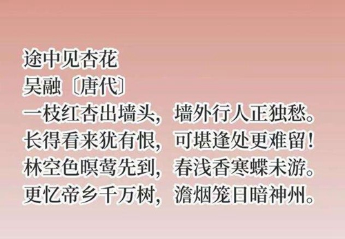 一枝紅杏出墻頭,墻外行人正獨(dú)愁。