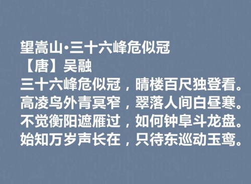 重頌詠諷刺之道 從吳融的三百零一首詩歌創(chuàng)作中,可以發(fā)現(xiàn)表現(xiàn)頌詠諷刺之道者,幾乎在各種題材中,皆有出現(xiàn)。如前文「寄贈酬答」一類提到的〈赴闕次留獻(xiàn)荊南成相公三十韻〉、〈寄尚顏師〉、〈贈方干處士歌〉等詩,皆是實(shí)踐「善善則頌詠之」的作品,如〈贈蛖光上人草書歌〉“篆書樸,隸書俗,草圣貴在無羈束。江南有僧名蛖光,紫毫一管能顛狂。人家好壁試揮拂,瞬目已流三五行。摘如鉤,挑如撥。斜如掌,回如斡。”在「登臨游旅」一類中更是不乏批評、諷刺之作,如〈金橋感事〉一詩,就是他對朝廷錯估情勢,輕率用兵之事,委婉的表達(dá)批判之意,也透露出他希望與外族和平共處的反戰(zhàn)思想;其它如〈華清宮二首〉、〈華清宮四首〉所表達(dá)的諷刺之意,更為強(qiáng)烈,如其〈華清宮四首〉之一: