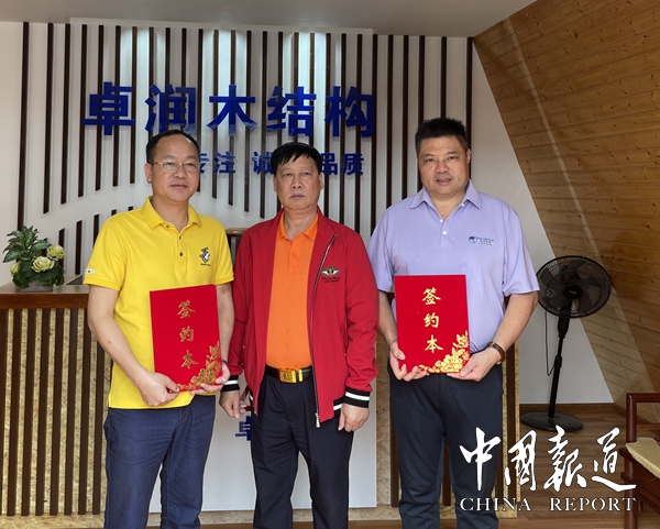 據(jù)悉,這次簽約儀式,是雙方簽訂的第二批次再投入30棟木屋別墅合作。(廣東中山市卓美潤木結(jié)構(gòu)科技有限公司供圖)