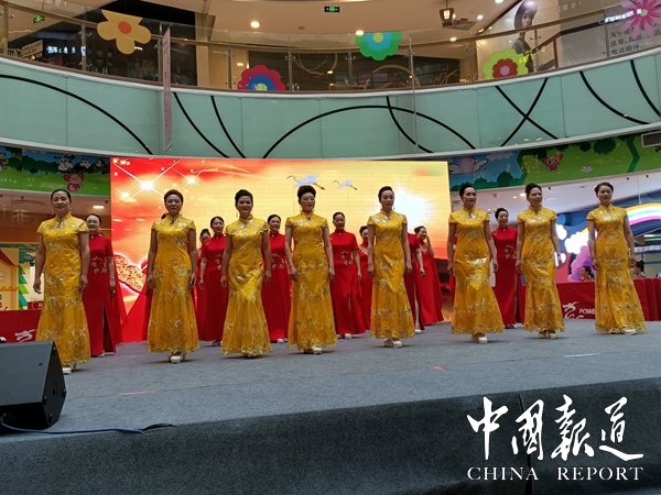 中國報道訊(吳蜀豐 通訊員 曹繼選)6月10日,健康中國公益萬里行中老年才藝大賽合川賽區(qū)海選賽在重慶合川區(qū)寶龍廣場舉行,重慶市合川區(qū)旗袍文化協(xié)會推送的《再唱山歌給黨聽》旗袍秀迎得臺下陣陣掌聲。成為合川區(qū)25支中老年文藝團隊中最具活力的表演團隊之一。“我把歌兒獻給你,五十六個民族同唱一首歌,我們一起再唱山歌,阿拉耶山歌給黨聽喲,再唱山歌給黨聽,幸福的歌兒獻給你,民族兄弟姐妹心連著心,我們攜手和諧家園,……優(yōu)美的舞蹈﹑動聽的歌詞令人留流連忘返。