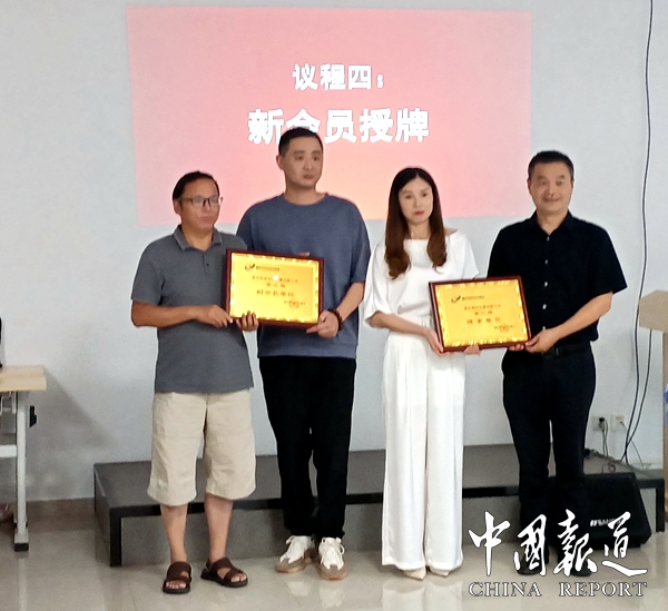 大力發(fā)展新會員,凝聚商會正能量,擴充商會好資源,助力會員強發(fā)展。會上為商會的新成員副會長、重慶星邁文化傳播有限公司董事長王建、理事、重慶典特電器有限公司總經(jīng)理陳禮軍,頒發(fā)入會牌匾。
